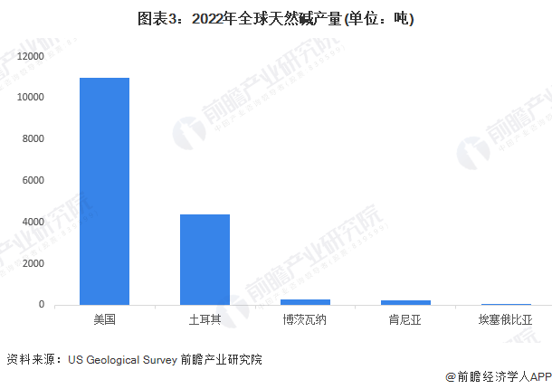中国以联碱法和氨碱法制备纯碱为主,而美国、土耳其等国家则以天然碱制备方法为主。2022年,全球天然碱产量在1600万吨左右。美国天然碱产量达到1100万吨,土耳其天然碱产量约为440万吨,其余国家天然碱产量低于30万吨。