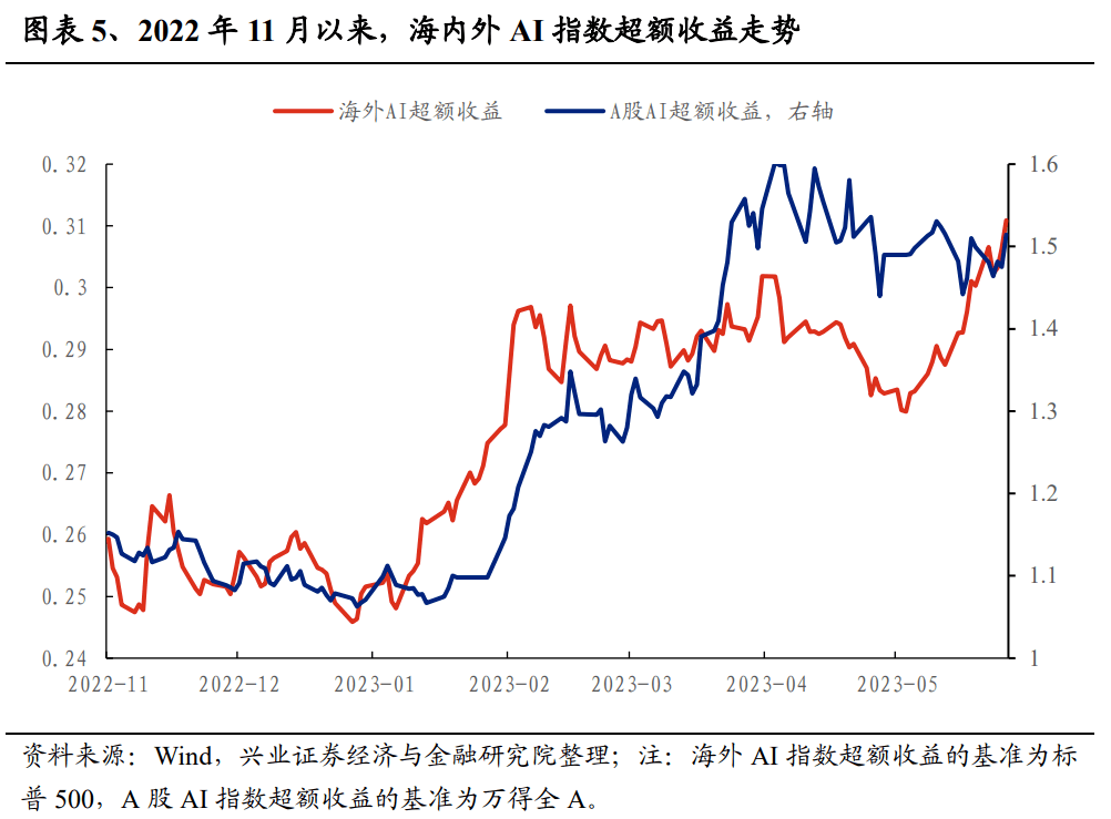 5月16日至26日,海外AI指数已经上涨8%,参考海外行情往往领先于国内行情,海外的AI算力热度,有望催化A股算力板块共振,国内云计算、算力芯片等板块或正迎来新一轮布局期。数据来源:wind,截至 2023/5/30