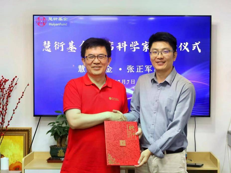 慧衍基金总经理许红伟(右)为张正军教授(左)颁发首席科学家聘书