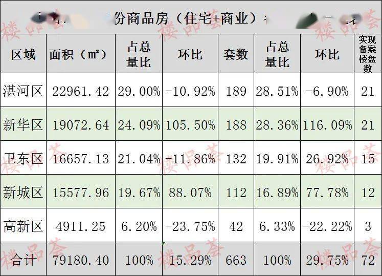 6月,湛河区监测楼盘实现备案189套、面积22961.42㎡。虽然备案面积在市区仍排位第一,但与5月相比,备案套数下降6.90%,面积下降10.92%。