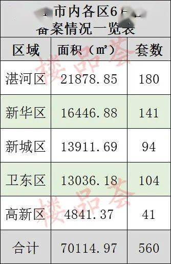 在监测的楼盘中,6月份平顶山市区这些楼盘的住宅备案套数达560套、面积70114.97㎡,环比套数上升28.15%,面积上升26.83%。