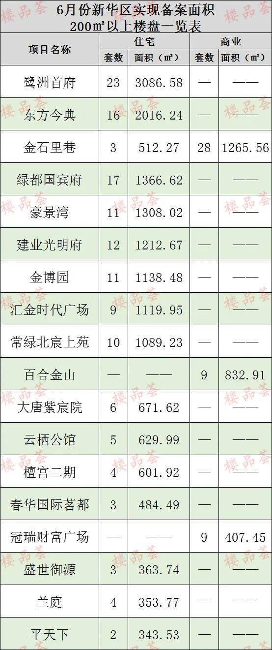 6月份,新华区1家楼盘进入前十,是鹭洲首府(第六)。