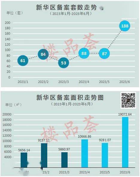在住宅上,6月新华区实现备案的楼盘有18家,备案141套、面积16446.88㎡。与5月相比,备案套数上升107.35%,面积上升96.36%。