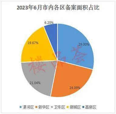 6月卫东区备案面积占市区总备案面积的21.04%,与5月相比下降一位,市区排名第三。