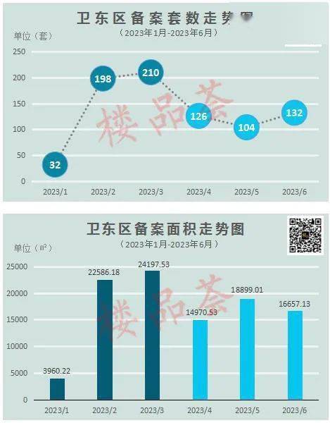 6月,卫东区监测楼盘实现备案房源132套、面积16657.13㎡,与5月相比,楼盘备案套数上升26.92%,面积下降11.86%。