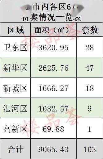 从区域来看,6月商业备案最多的是卫东区,备案房源28套、面积3620.95㎡。(见下表)