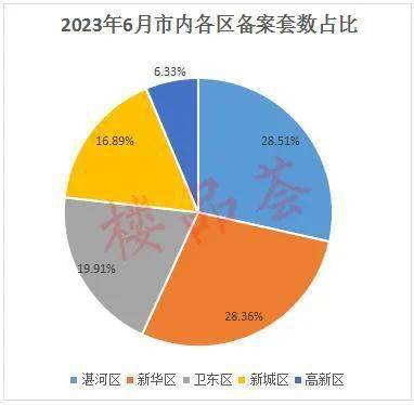 6月,市内五区有两个区备案量上升,上升幅度最大的是新华区105.50%,其次是新城区88.07%。