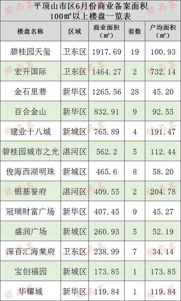 在监测的市内各区楼盘备案量上,6月湛河区以189套、面积22961.42㎡的业绩位居第一。