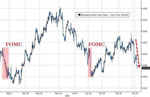 衡量兑六种主要货币的一篮子美元指数DXY跌0.3%并失守102关口,至6月22日以来的三周盘中新低。由于押注加息周期结束,时隔四个月后,对冲基金集体看空美元。