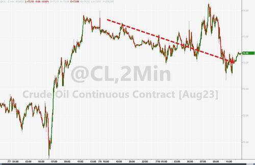 需求前景担忧和OPEC+主要成员国在8月深化削减供应等因素相互博弈,国际油价跌约1%,均脱离两个月高位,美股盘初跌幅曾显著收窄至0.2%。