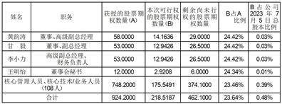 3、行权数量:218.5187万份,可行权的激励对象及股票期权数量如下:
