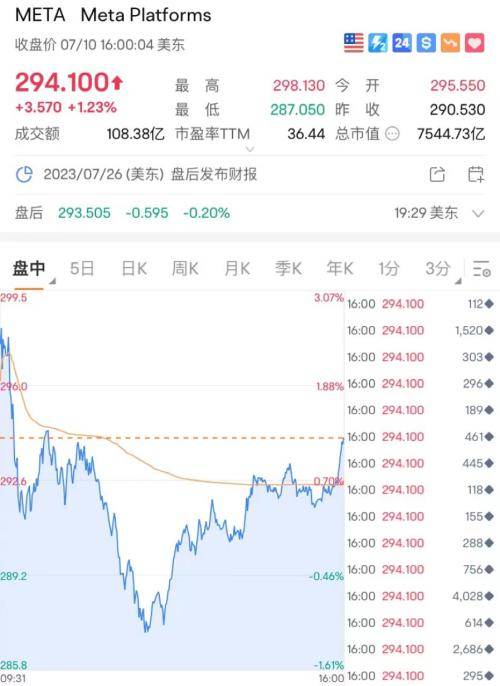 Meta逆市涨1.23%,市值打到7544.73亿美元,超过了巴菲特的伯克希尔·哈撒韦公司,上升到了美股第七的位置。