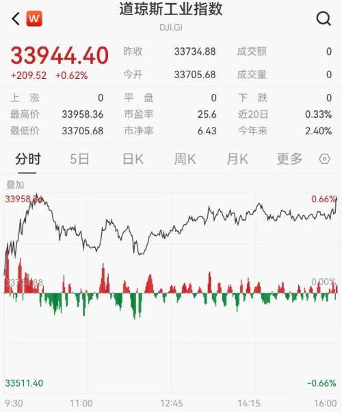 美股整日呈小幅震荡,盘中一度齐跌,但尾盘重新转涨,最终集体收涨。截至收盘,道琼斯指数涨0.62%,结束3连跌,报33944.40点;标普500指数涨0.24%,报4409.53点;纳斯达克综合指数涨0.18%,报13685.48点。