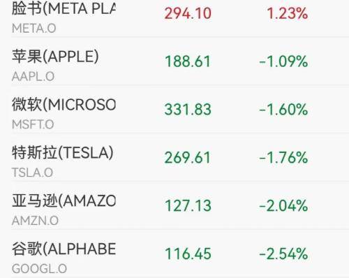 而科技股多数下跌。苹果跌1.09%,亚马逊跌2.04%,奈飞涨0.82%,谷歌跌2.54%,微软跌1.6%。