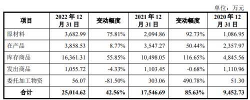 数据显示,2020年至2022年斯贝科技存货规模分别为9263.62万元、1.73亿元、2.44亿元,占公司流动资产比例分别为34.96%、44.23%和51.25%,公司存货规模在进一步扩大。