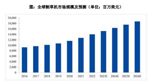 Facts&Factors发布的报告显示,2022年全球割草机市场规模为140亿美元,较2016年显著提升。预计到2026年,割草机市场规模将达到187亿美元,年复合增长率为8%。