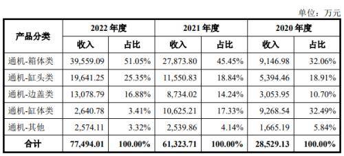 在下游旺盛需求的带动下,斯贝科技通机零部件收入快速提升。2020年公司通机零部件营业收入为2.85亿元,2022年增长至7.75亿元,三年内斯贝科技通机零部件营收增长171.93%。