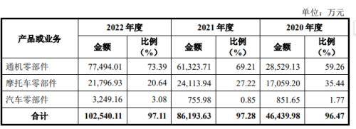 公开资料显示,斯贝科技成立于1994年,主要从事通用发动机零部件、摩托车零部件和汽车零部件三大系列产品生产、销售。其中通机零部件为公司核心产品,2022年公司通机零部件实现营收7.75亿元,占公司主营业务收入比例为73.39%。