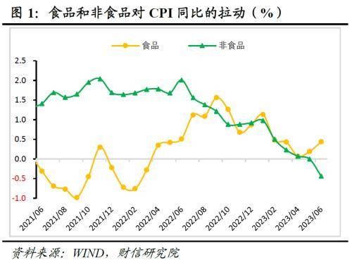 一、需求不足是CPI同比回落主因。食品方面,鲜菜支撑食品价格回升较多,但猪肉负向拖累有所加剧。其中,鲜菜价格受极端天气冲击供给影响,同比增速由跌转涨,对CPI同比的支撑作用增强;而猪肉价格受高基数和供给充足影响,对CPI的负向拖累有所增强。非食品方面,受油价拖累作用增强、服务需求恢复放缓以及汽车家电等耐用消费品价格继续回落影响,非食品价格同比下降0.6%,为2021年3月份以来首次转负。核心CPI也低位回落,反映出国内需求不足问题凸显。