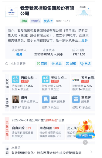 此外,搜狐财经查询天眼查发现,58同城目前是我爱我家控股集团股份有限公司的第三大股东,持股比例为6.73%。