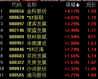 房地产板块开盘冲高,津滨发展秒板,金科股份、中迪投资、京投发展、沙河股份等纷纷拉升。