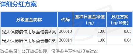 7月11日发布《光大保德信信用添益债券型证券投资基金分红公告》。本次分红为2023年度的第2次分红。公告显示,本次分红的收益分配基准日为7月7日,详细分红方案如下: