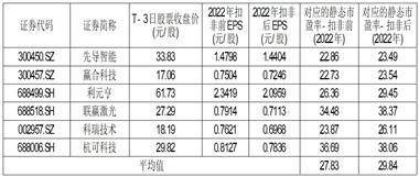 根据国家统计局2017年发布的《国民经济行业分类》(GB/T4754—2017),公司所属行业为专用设备制造业(C35),截至2023年6月27日(T-3日),中证指数有限公司发布的该行业最近一个月平均静态市盈率为30.48倍。