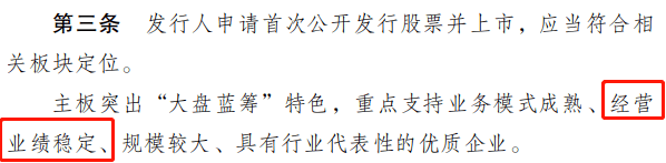 证监会官网显示,《首次公开发行股票注册管理办法》规定,发行人申请首次公开发行股票并上市,应当符合相关板块定位。其中主板突出“大盘蓝筹”特色,重点支持业务模式成熟、经营业绩稳定、规模较大、具有行业代表性的优质企业。