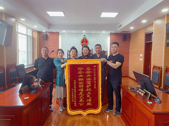7月3日上午,宁江区人民法院速裁庭收到某银行松原市分行送来的一面印有“为企业保驾护航正气浩然,给企业排忧解难克己奉公”的锦旗,为速裁庭法官及干警促进营商环境,维护金融秩序所作出的努力表达感谢。