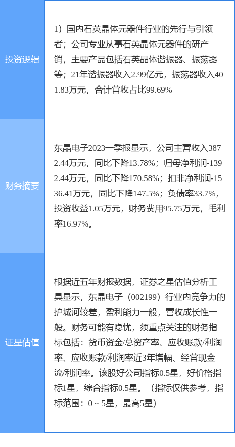 东晶电子涨停收盘,收盘价9.57元。该股于9点36分涨停,未打开涨停,截止收盘封单资金为4654.37万元,占其流通市值2.0%。