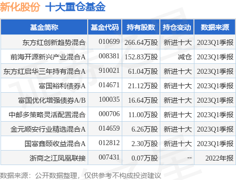 重仓新化股份的公募基金请见下表: