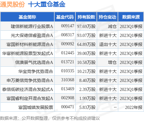 根据2023Q1季报公募基金重仓股数据,重仓该股的公募基金共9家,其中持有数量最多的公募基金为建信新能源行业股票A。建信新能源行业股票A目前规模为43.96亿元,最新净值1.8111(7月10日),较上一交易日上涨0.44%,近一年下跌33.37%。该公募基金现任基金经理为陶灿 田元泉。陶灿在任的基金产品包括:建信改革红利股票A,管理时间为2014年5月14日至今,期间收益率为358.4%;建信恒久价值混合,管理时间为2017年3月22日至今,期间收益率为87.16%;建信高股息主题股票,管理时间为2020年1月21日至今,期间收益率为60.98%;田元泉在任的基金产品包括:建信智能汽车股票,管理时间为2021年9月10日至今,期间收益率为-19.18%。