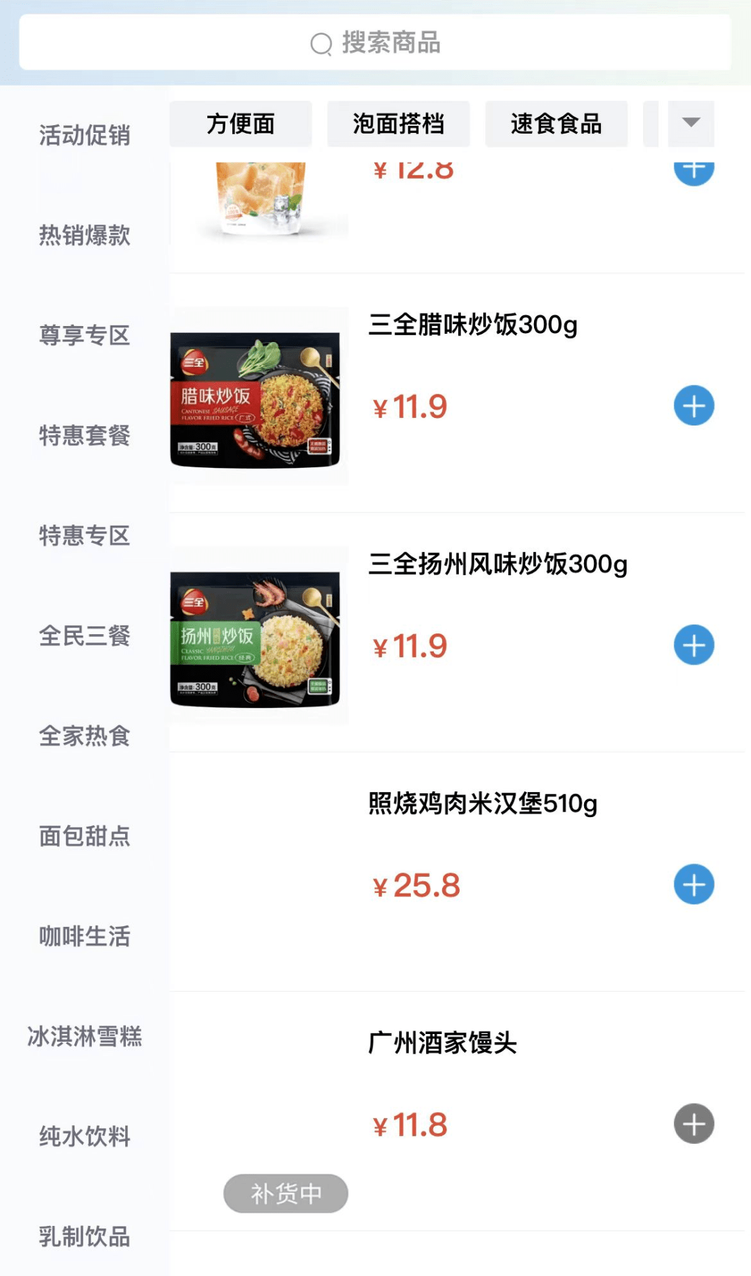 同时,预制菜洞察在“全家线上外卖”小程序发现,方便速食大类的“冰冻速食”子品类中,三全食品的腊味炒饭、扬州风味炒饭,广州酒家的馒头等预制产品赫然在列。