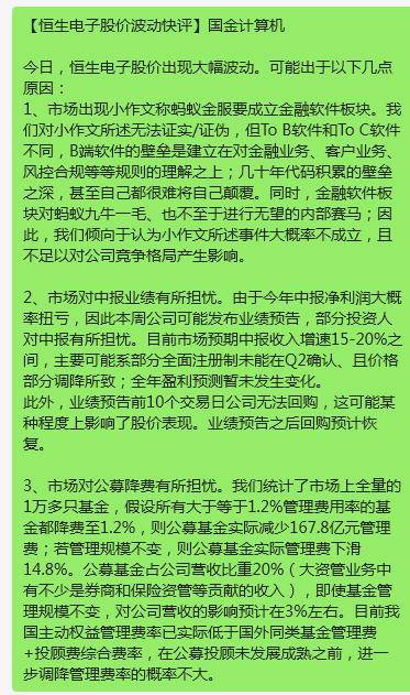 不过,700亿市值的龙头恒生电子今天崩了!当然泰勒也找到了原因,据说传闻称蚂蚁金服要成立金融IT软件板块,“恒生电子要被瓜分蛋糕了” 。
