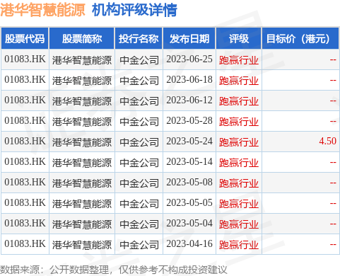截至2023年7月11日收盘,港华智慧能源(01083.HK)报收于3.35港元,下跌0.59%,换手率0.03%,成交量94.5万股,成交额317.14万港元。投行对该股的评级以跑赢行业为主,近90天内共有10家投行给出跑赢行业评级,近90天的目标均价为4.5港元。中金公司最新一份研报给予港华智慧能源跑赢行业评级。
