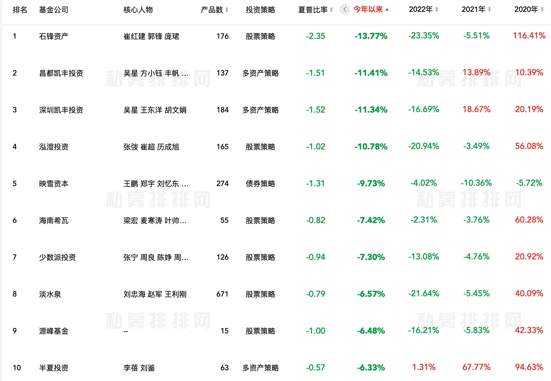 石锋资产业绩垫底,“劳模”淡水泉亏6%