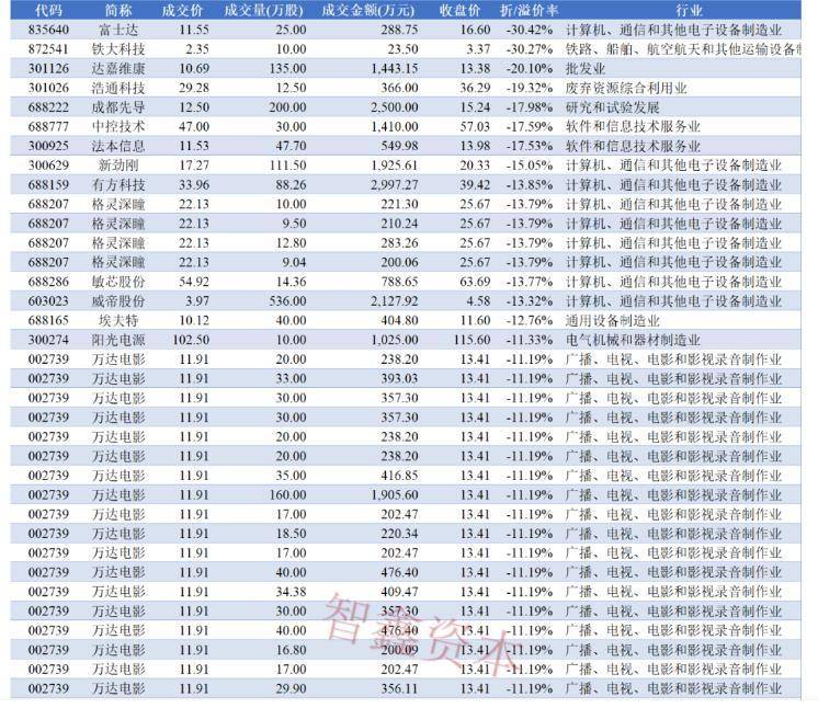 今日大宗交易明细