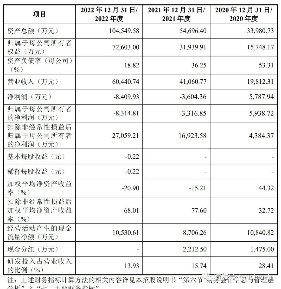 招股书显示,长光辰芯2020年、2021年、2022年营收分别为1.98亿元、4.1亿元、6.04亿元;净利分别为5787.9万元、-3604.4万元、-8409.9万元;扣非后净利分别为4384万元、1.69亿元、2.7亿元。