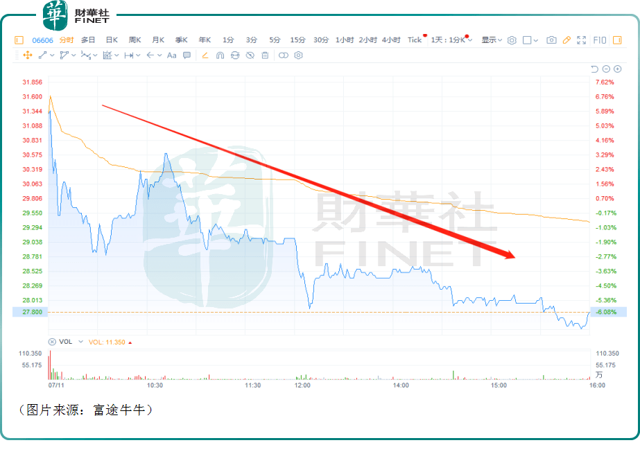 受此消息的刺激,其股价在7月11日高开近6%,不过随后一路回落,截至收盘最终下跌6.08%,有点利好落地的意思。