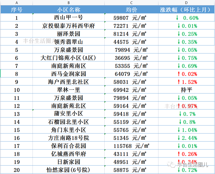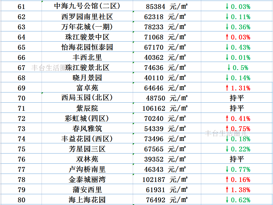 丰台7月房价曝光