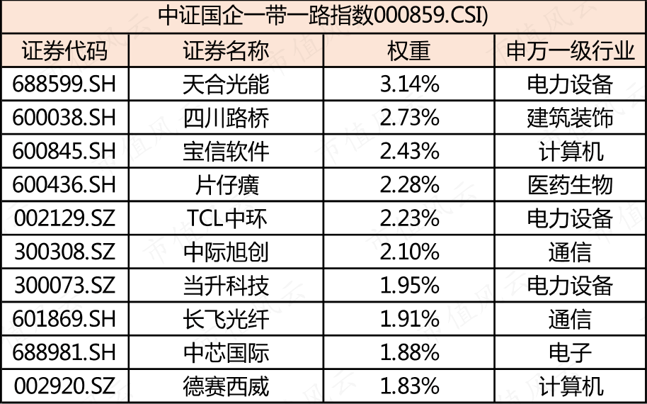 (注:choice数据中证国企一带一路国企指数行业配置)