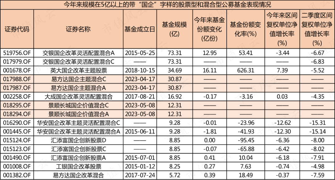 另外,风云君把市场上规模5亿以上的带“国企”字样的股票型和混合型的主动基金也拉出来看看它们表现怎么样?