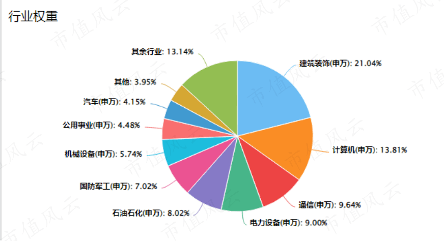 两个指数在行业配置上,有很大差别,中证央企创新指数涵盖建筑装饰(21.04%)、计算机(13.81%)、通信(9.64%)、电力设备(9%)、石油石化(8.02%)等领域。