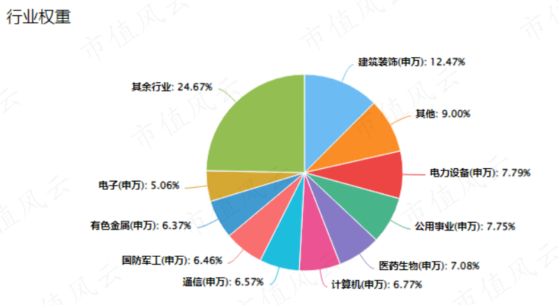 前十大权重股来自于7个行业,而且权重合计也仅为22.4%。这样分散的配置换来的是风险的分散和对应涨幅上的牺牲。