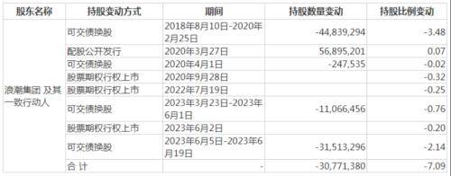 6月5日至19日,浪潮集团通过可交债换股,减持了3151.33万股公司股份,占公司总股本的2.14%。