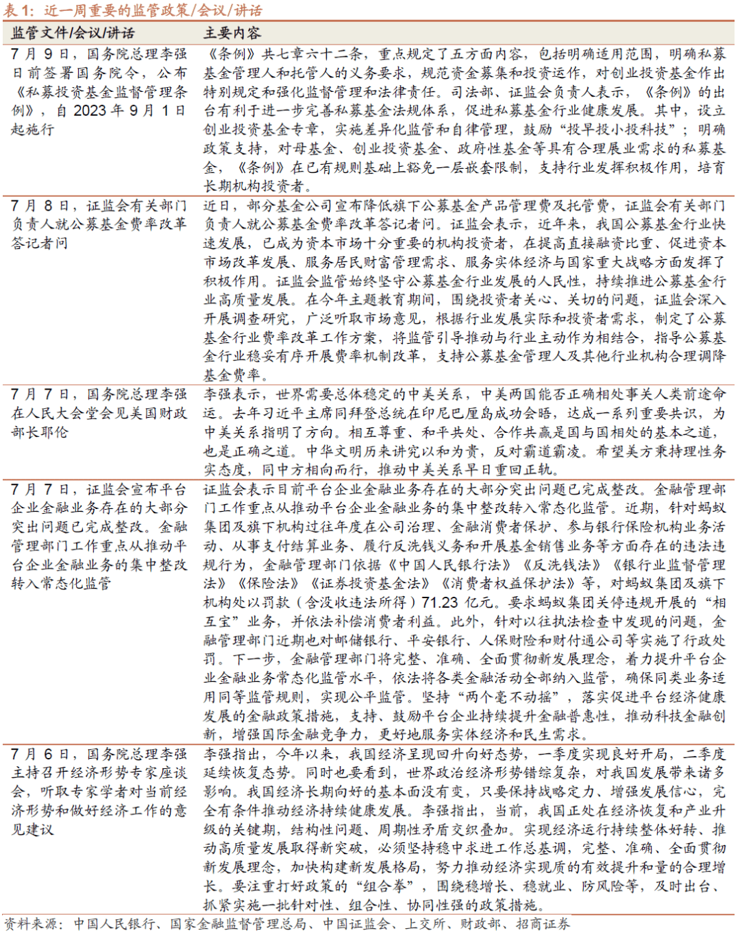 A股面临的外部流动性环境开始逐渐改善。考虑到下半年美国核心通胀基数明显抬升,在成本下行和就业削弱的背景下,美国核心通胀也有望明显回落。7月26日美联储大概率再加一次息之后结束加息的概率加大。美债收益率当前4%左右进一步上行概率已然较低,美元指数开始重新走弱,人民币兑美元汇率也开始企稳回升,有望吸引外资净流入支撑A股震荡上行。