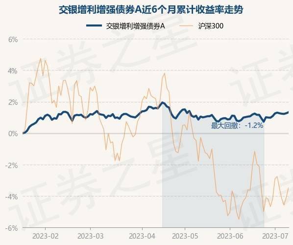 7月11日,交银增利增强债券A最新单位净值为1.19元,累计净值为1.568元,较前一交易日上涨0.06%。历史数据显示该基金近1个月上涨0.33%,近3个月下跌0.2%,近6个月上涨1.37%,近1年上涨0.59%。该基金近6个月的累计收益率走势如下图: