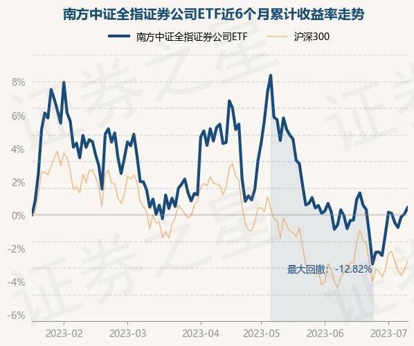 7月11日,南方中证全指证券公司ETF最新单位净值为0.8901元,累计净值为0.8901元,较前一交易日上涨0.49%。历史数据显示该基金近1个月上涨0.61%,近3个月下跌5.63%,近6个月上涨0.53%,近1年下跌3.19%。该基金近6个月的累计收益率走势如下图: