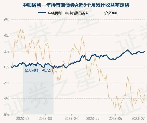 7月11日,中银民利一年持有期债券A最新单位净值为1.0199元,累计净值为1.0199元,较前一交易日上涨0.09%。历史数据显示该基金近1个月上涨0.33%,近3个月上涨1.24%,近6个月上涨1.95%,近1年上涨0.14%。该基金近6个月的累计收益率走势如下图: