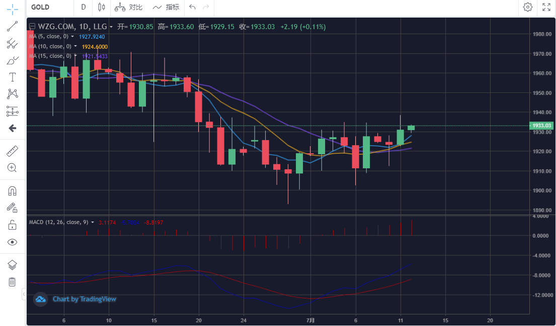 截至当日美市收盘,现货黄金收报1932.03美元/盎司,相较于此前一日上升6.82美元,COMEX 8月黄金期货收涨0.31%,报1937.10美元/盎司。